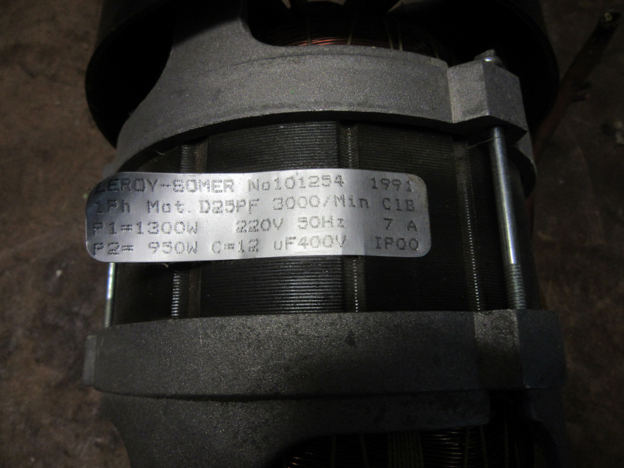 3D Drehstrommotor LEROY-SOMER No.101254/1991 1Ph Mot.D25PF 3000 U/Min P1=3D 1,3KW 220V P2=3D 0,95KW uF400V Ort R1Sp2Z3 3D Drehstrommotoren