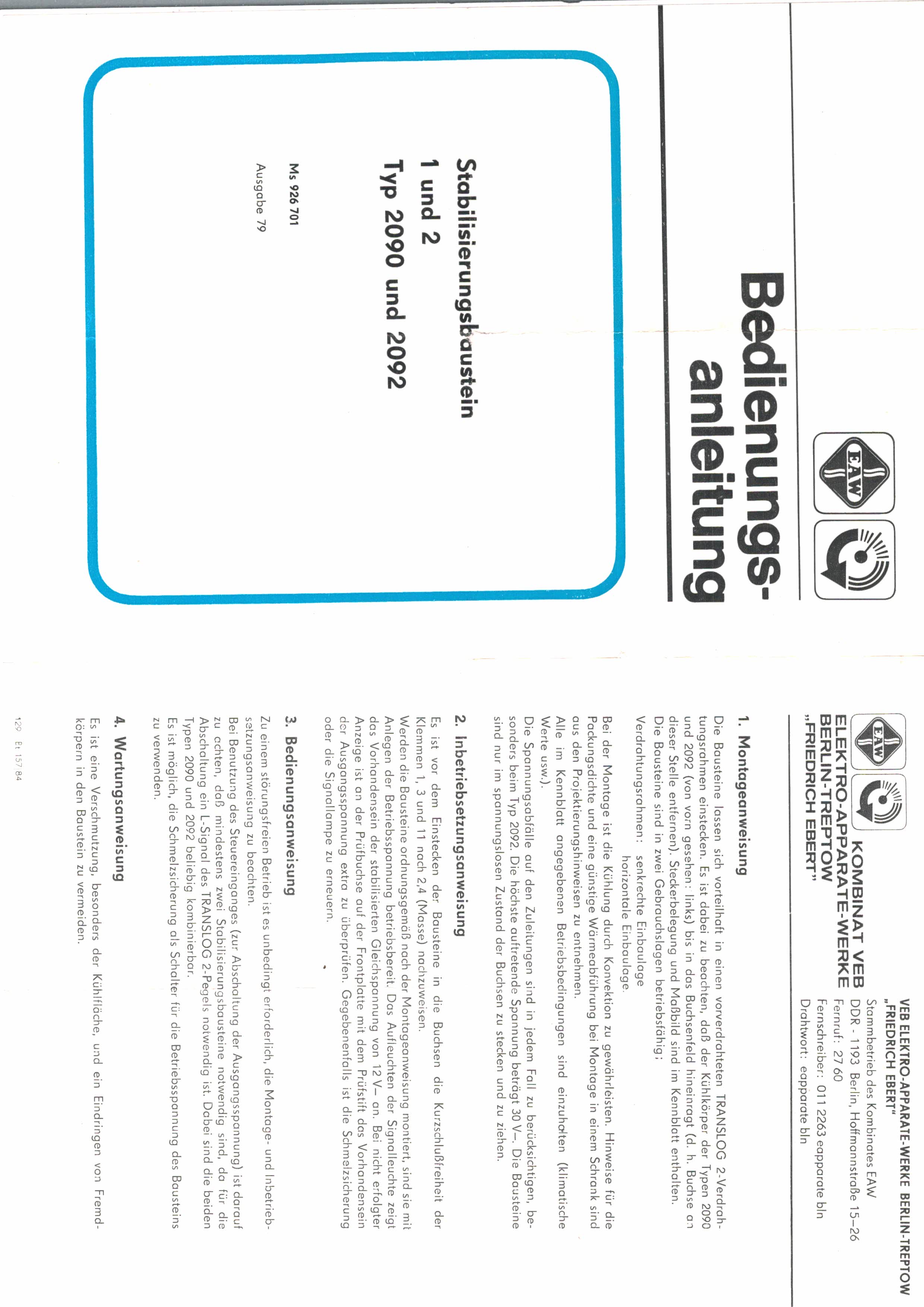 Bedienungsanleitung Stabilisierungsbaustein 2090 und 2092
